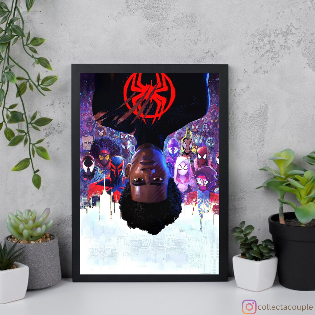 Embark on a breathtaking interdimensional adventure with our mesmerizing movie poster, "Miles Morales Across the Spider-Verse," which offers a tantalizing glimpse into the eagerly awaited sequel to the groundbreaking animated film, "Spider-Man: Into the Spider-Verse." Join Miles Morales, the Afro-Latino teenager who swings through the multiverse as Spider-Man, as he teams up with new and familiar heroes to confront a threat that spans across dimensions. Get ready to experience a web-slinging journey like no other in this electrifying artwork.