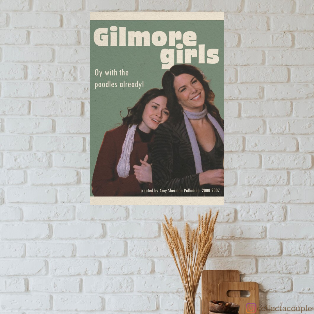 Enter the charming world of Stars Hollow with our exclusive Gilmore Girls poster, featuring the beloved mother-daughter duo Rory and Lorelai Gilmore. Emblazoned with the iconic phrase "Oy with the Poodles Already!" this artwork is a delightful tribute to the wit, warmth, and unforgettable bond shared by two of television's most beloved characters.